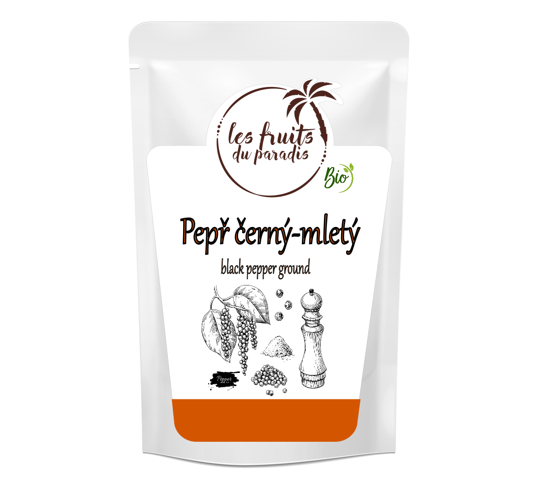 Ground black pepper is made from the fruit of the black pepper tree. These fruits are fermented, dried in the sun and then ground. This production process ensures that the pepper retains its typical flavour and pungent aroma. Pepper is native to India, where it has its roots. However, after its spread around the world, mainly thanks to seafaring, it began to be cultivated in other countries with tropical climates, such as Brazil or Vietnam.Few dishes today could do without a little pepper for flavouring. It belongs in every cuisine and is used to flavour all types of meat, most fish and vegan and vegetarian dishes. Organic black pepper also has several health benefits for the body. It contains antioxidants that promote overall health. It is also a source of vitamin C, which is important for immunity and natural defenses.